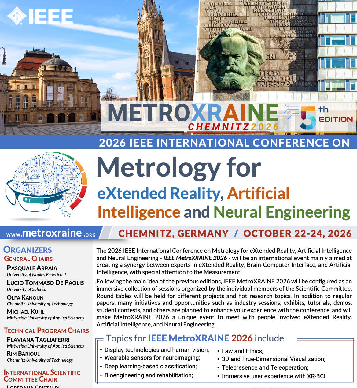 Following the main idea of the previous editions, IEEE MetroXRAINE 2025 will be configured as an immersive collection of sessions organized by the individual members of the Scientific Committee. Round tables will be held for different projects and hot research topics. In addition to regular papers, many initiatives and opportunities such as industry sessions, exhibits, tutorials, demos, student contests, and others are planned to enhance your experience with the conference, and will make MetroXRAINE 2025 a unique event to meet with people involved eXtended Reality, Artificial Intelligence, and Neural Engineering.